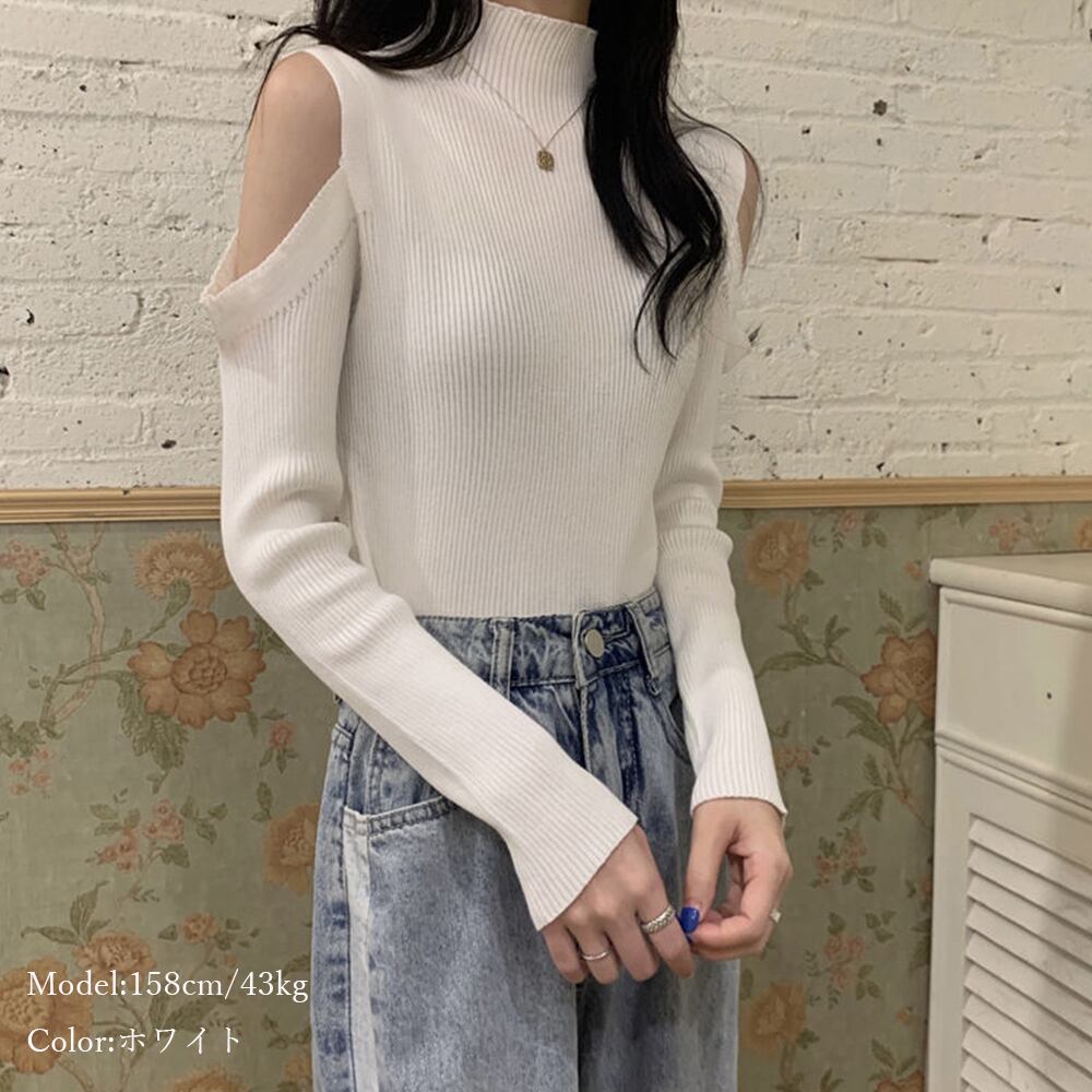 秋冬インナートップ 肌見せ リブニット 肩開き セーター