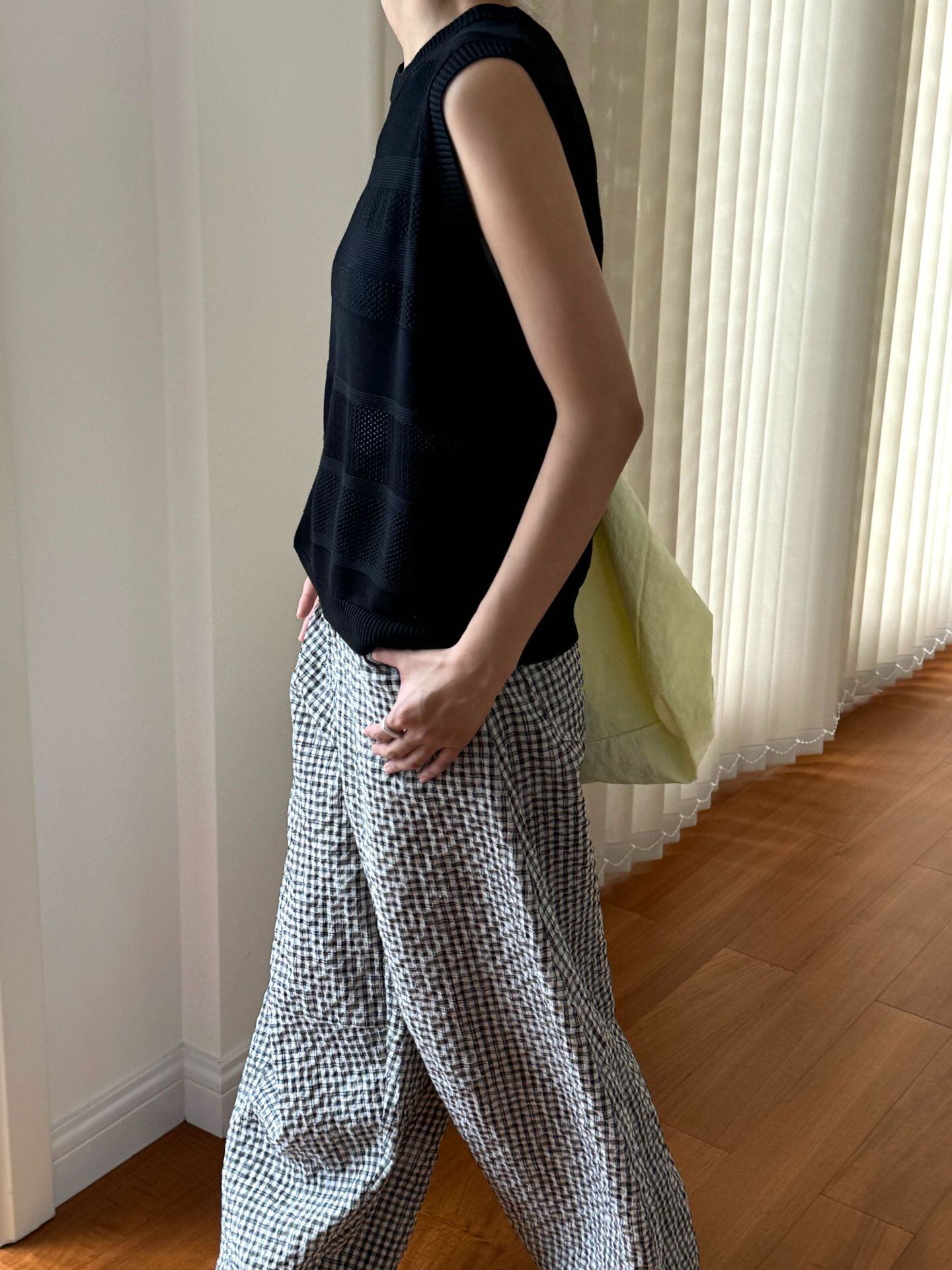シャツ シアートップス シアーニット 透け感 トレンド 大人 ノースリーブ 黒 サマーニット