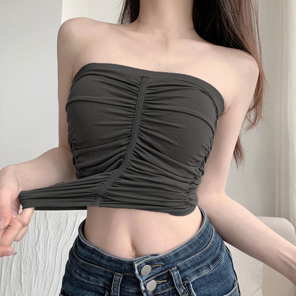 無地チューブトップ フィットベアトップ 肩出しトップス春夏