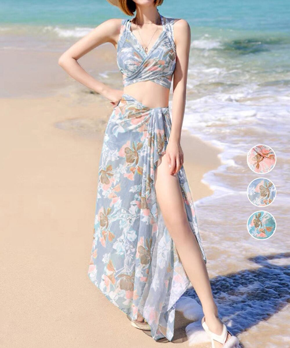 夏のビーチシーンを華やかに演出するタンキニ水着3点セットが登場
