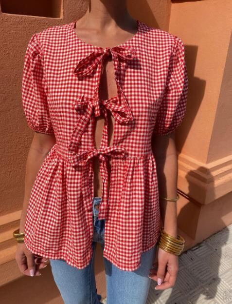 トップス 女 レディース 半袖 チェック柄 シャツ ブラウス コート アウター