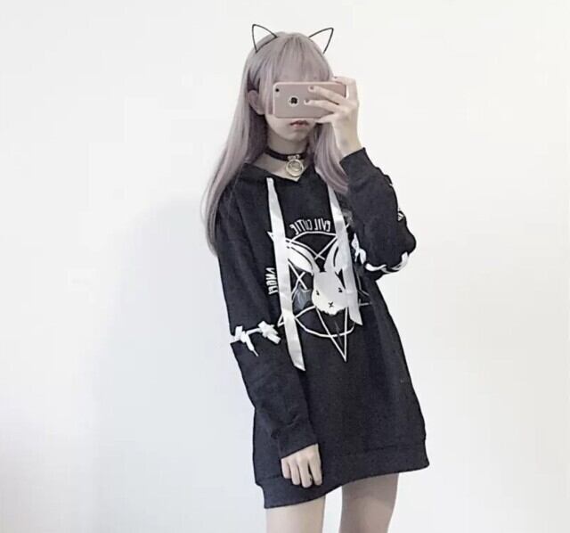 デビル 風 うさぎと 星 の プリント が かわいい ビックシルエット プルオーバー パーカー になります。