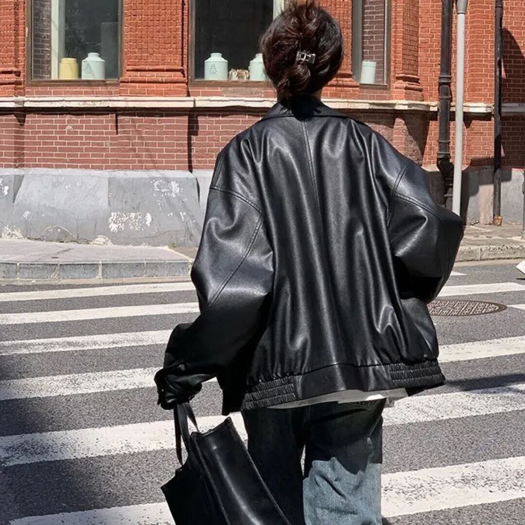 フェイクレザー オーバーサイズ ジャケット ブラック メンズ レディース ベーシックタイプ ビックシルエット