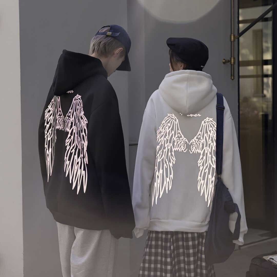 パーカー 羽根 反射 背中 ブラックorホワイト トップス プルオーバー 韓国