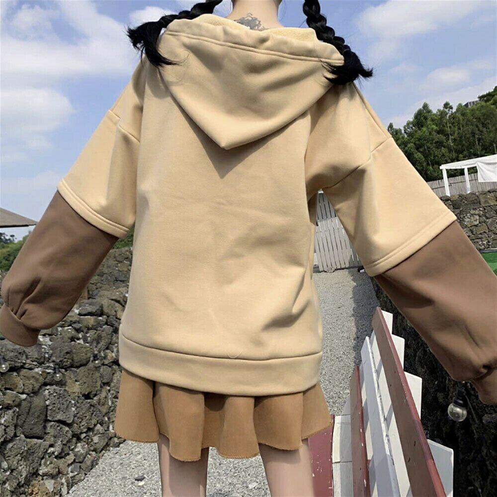 パーカー クマがミルクティーを飲む フリーサイズ フード付き