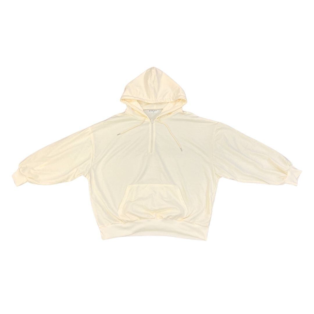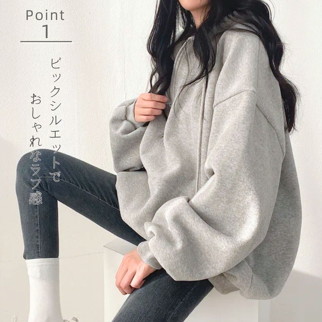 大きめのシルエットがラフな大人のお洒落な佇まいを演出してくれます。しかもジップ付き!ラフなパーカーかと思いきや、、鎖骨をチラ見せしてくれるこの商品♪普通のパーカーでは魅せることの出来ない女性らしさをアピールできるアイテムとなっております!