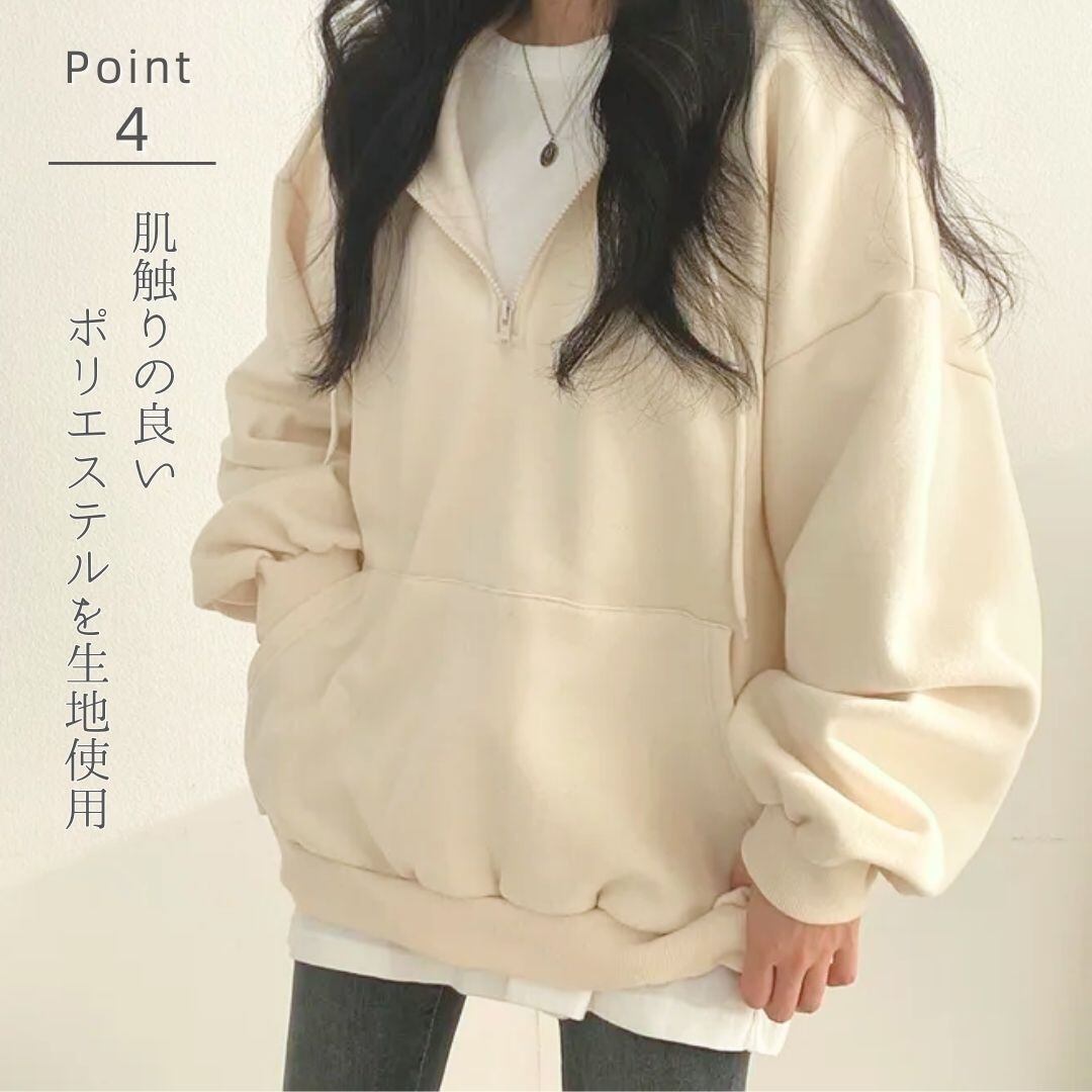 パーカー ハーフジップパーカー ビックサイズ 無地 全2色 レディース トップス トレーナー スウェット