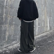 パンツ カーゴ カーキ ワイドパンツ トレンド 韓国ファッション ワイドレッグパンツ メンズ レディース