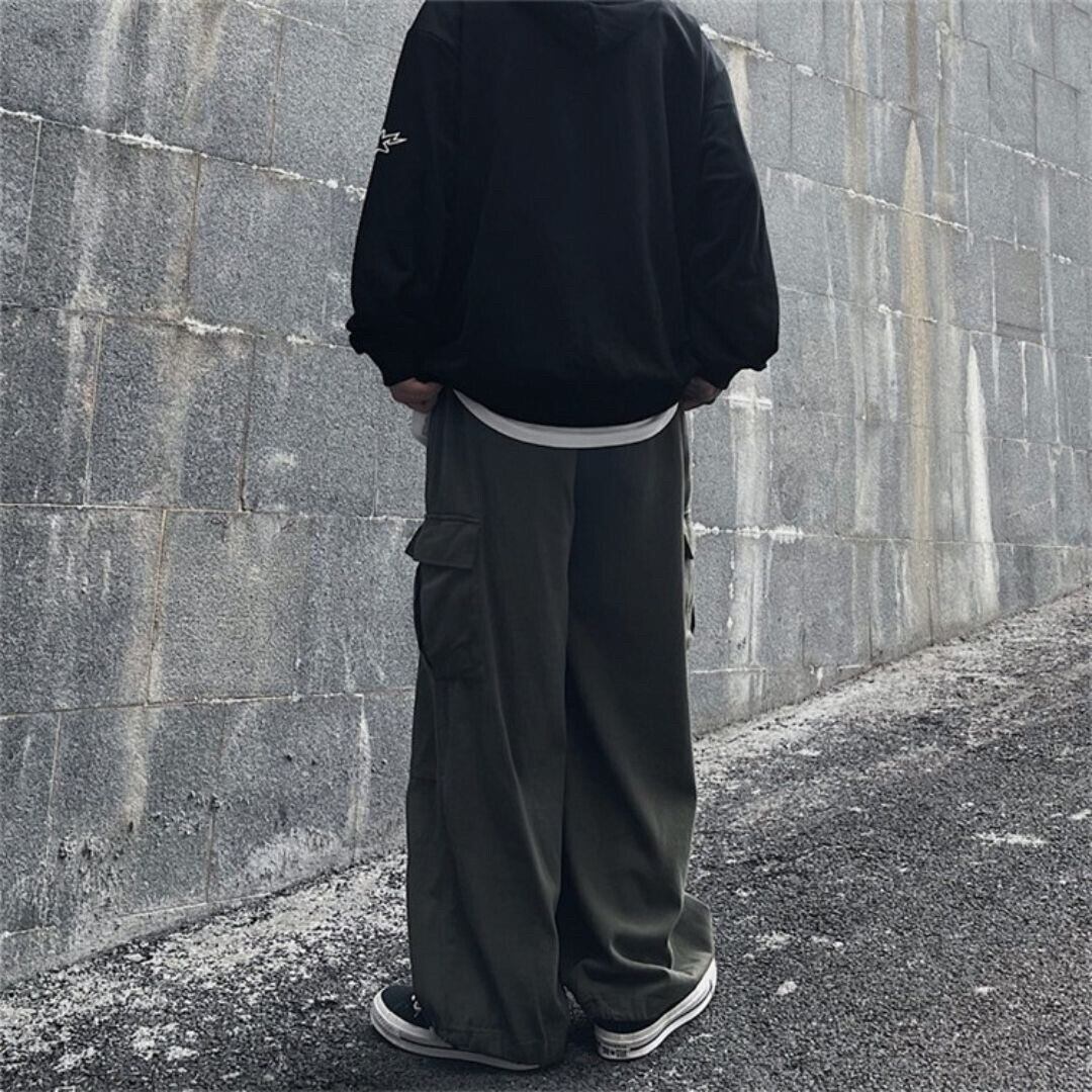 パンツ カーゴ カーキ ワイドパンツ トレンド 韓国ファッション ワイドレッグパンツ メンズ レディースわ
