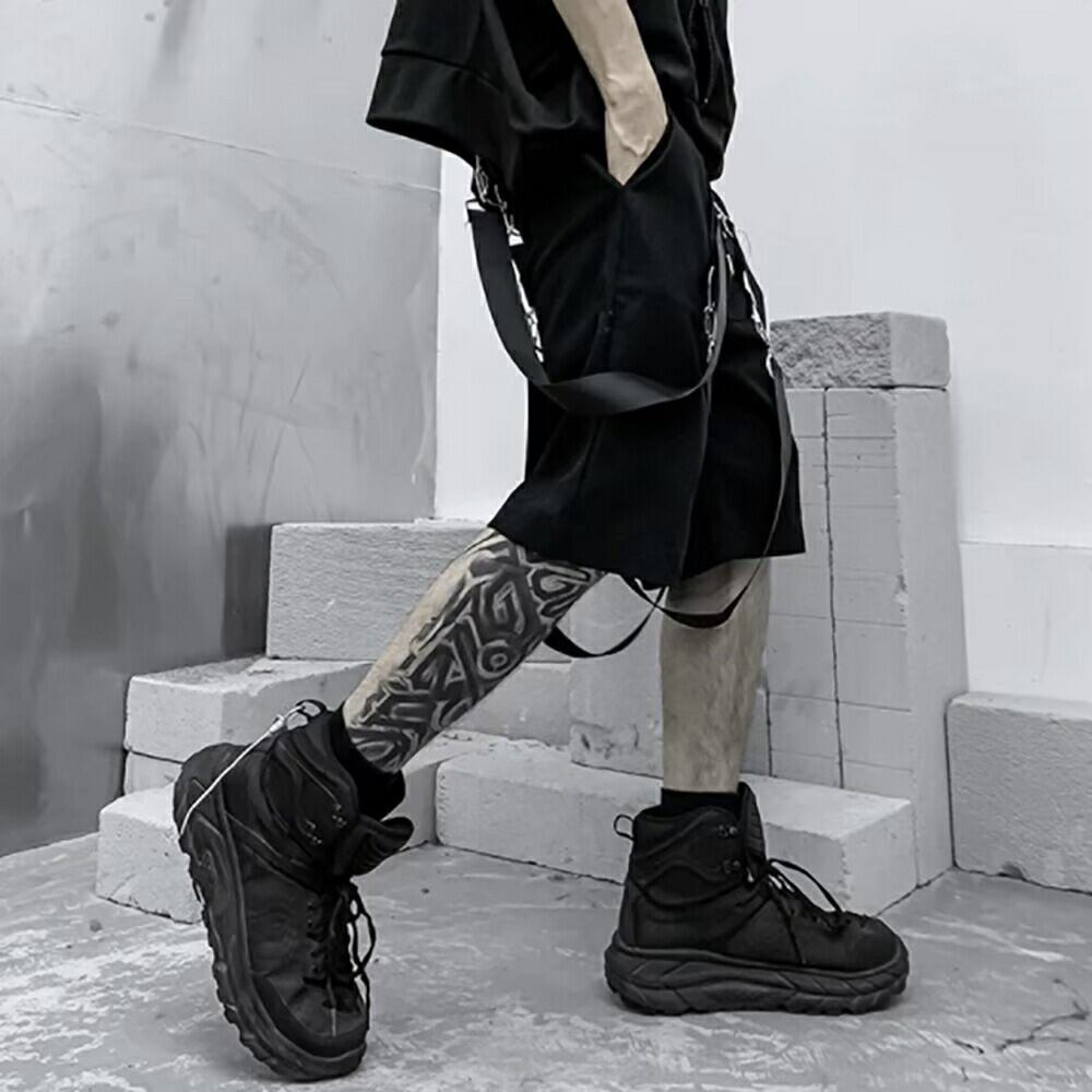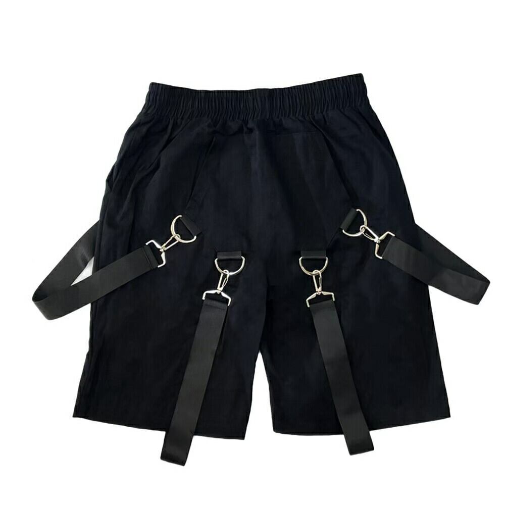 ハーフパンツ ベルト ブラック ボトムス ひざ丈 大きいサイズ ゆったり 伸縮性 ファッション アジアン カジュアル メンズ レディース ユニセックス 男女兼用 ルームウェア 変形 個性的 プレゼント 贈り物 室内 オールシーズン ダンス ヨガ お揃い シンプル ラフ コーデ ストリート ヒップホップ 学園祭 祭り