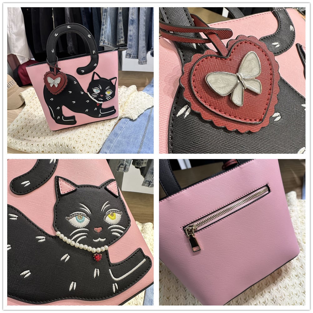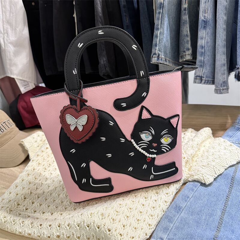 ネコ柄 刺繍 ハンドバッグ 肩掛け 手提げバッグ 上品 レディース ファッション