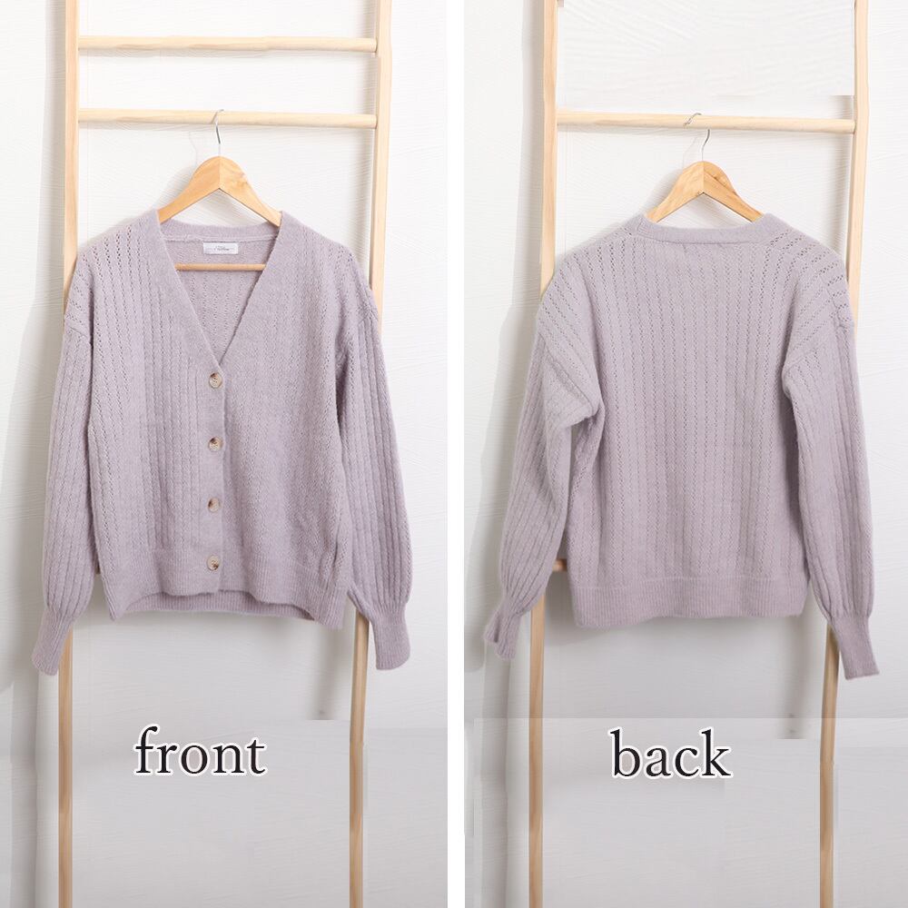 ドロショルで華奢見え&Vネックで鎖骨をきれい見せする着やせニットカーディガン