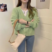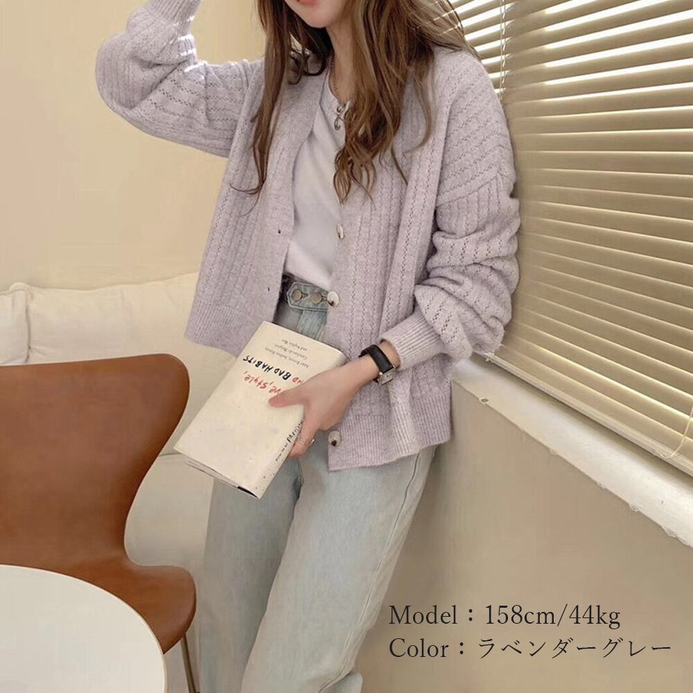 ドロップショルダー ニットカーディガン 秋冬新作 リブ編み ニットトップス 長袖 ゆったり ショート丈 羽織 vネック