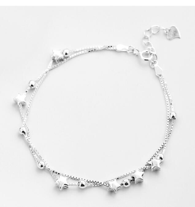 レディース 925シルバー リング アクセサリー s 925純銀星ビーズ二重ブレスレット