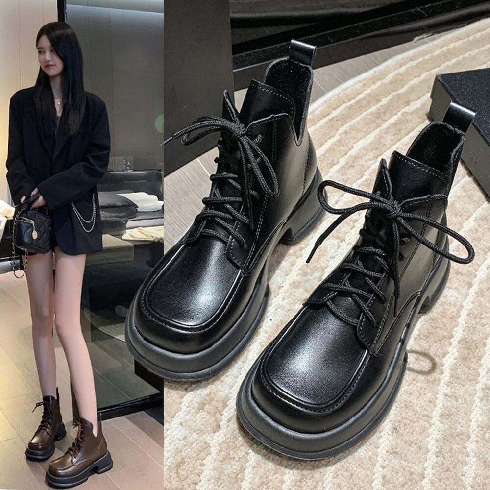 軽量ブーツオシャレ 編み上げブーツ秋冬 シューズ歩きやすい