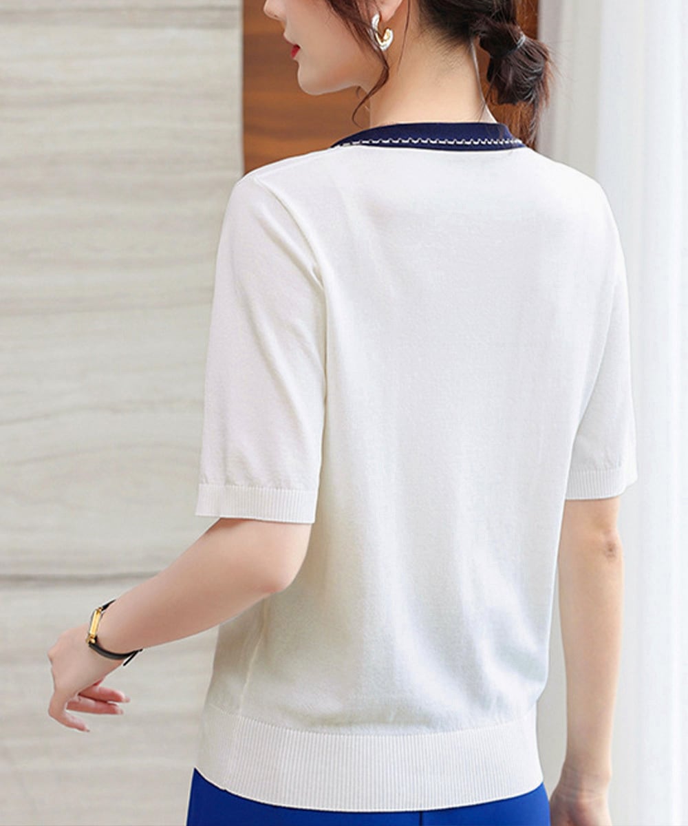 レディース 春夏半袖ニットソー 着やせ ニットトップス Vネックニットカットソー 無地 お洒落通勤服 大人可愛いトップス