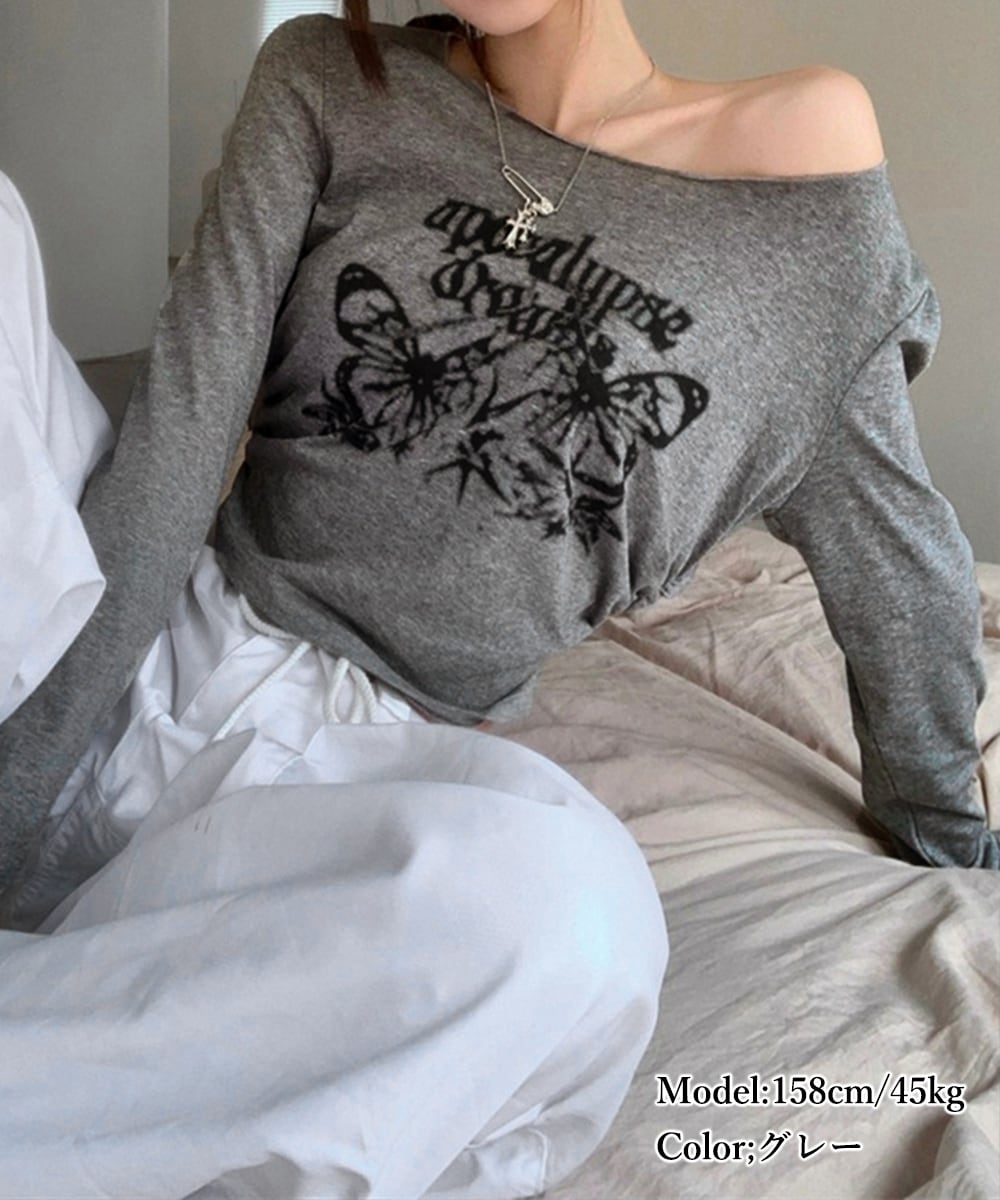 ヘソ出しロゴtシャツ 長袖 オルチャン