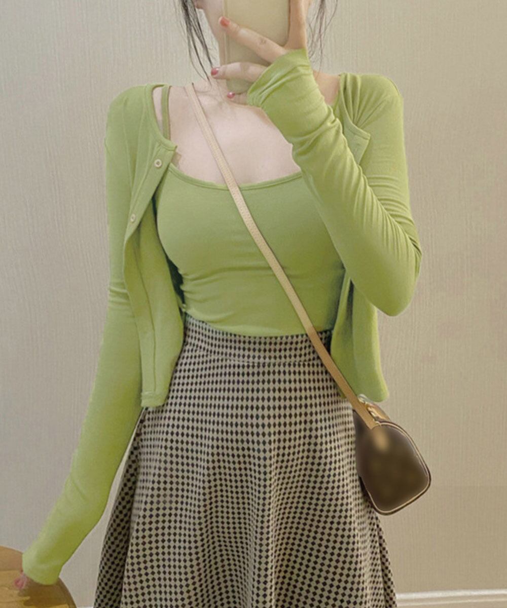 レディース ショート丈 セットアップ カップ付き 前開き 春秋服 おしゃれ 無地 アンサンブル 20代30代 韓国風