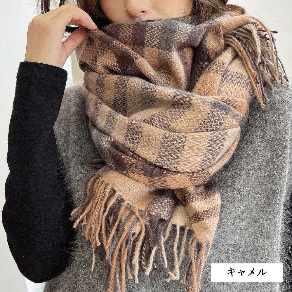 チェック柄 マフラー 大判ストール 秋冬