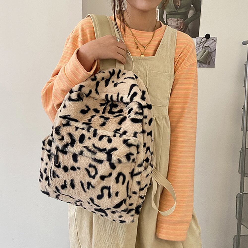 リュックサック ヒョウ柄 ふわふわ 通学